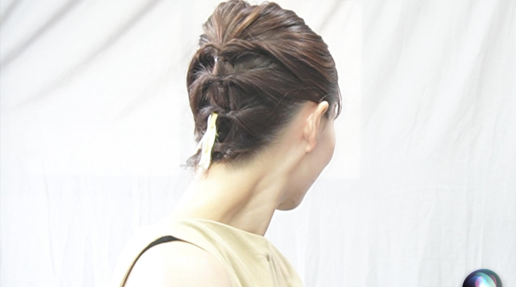 合わせていく中でも緩みが出やすいので、しっかりと毛束を捻りながら合わせましょう。