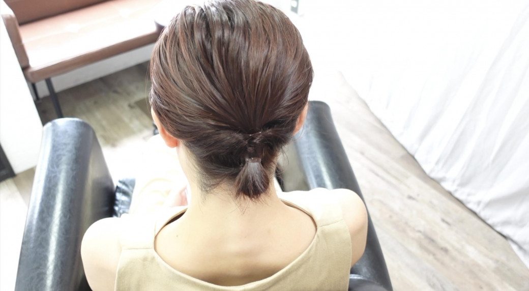 耳下の部分を先に結んで土台を作ることで襟足がキレイにまとまり