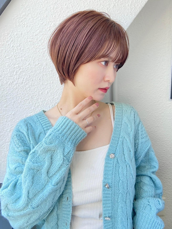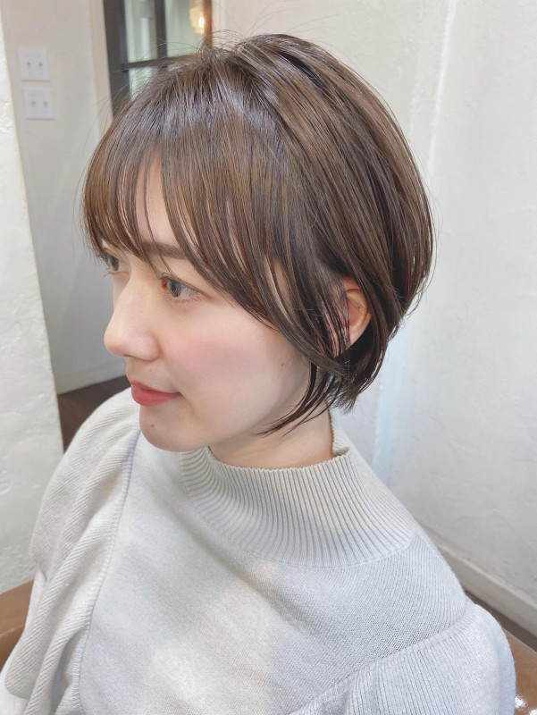 さらに襟足は、正面からでもチラ見えする長さを残してフェミニンさを演出。 首元までレングスがあるとニュアンスづくりがしやすく、カジュアルな印象のショートレングスが華やかに。 顔を包み込むようなマッシュラインで小顔効果も絶大です。