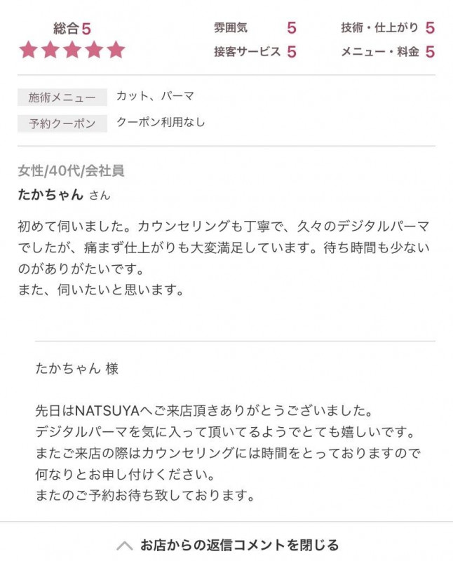 NATSUYAにはショートヘアを得意とするスタイリストが多数在籍しております。これまで2万人以上のあらゆる髪質や骨格のお客様を担当してきました。髪の乾かし方や、スタイリングの方法などアフターサービスも充実しています。是非一度お任せください♪