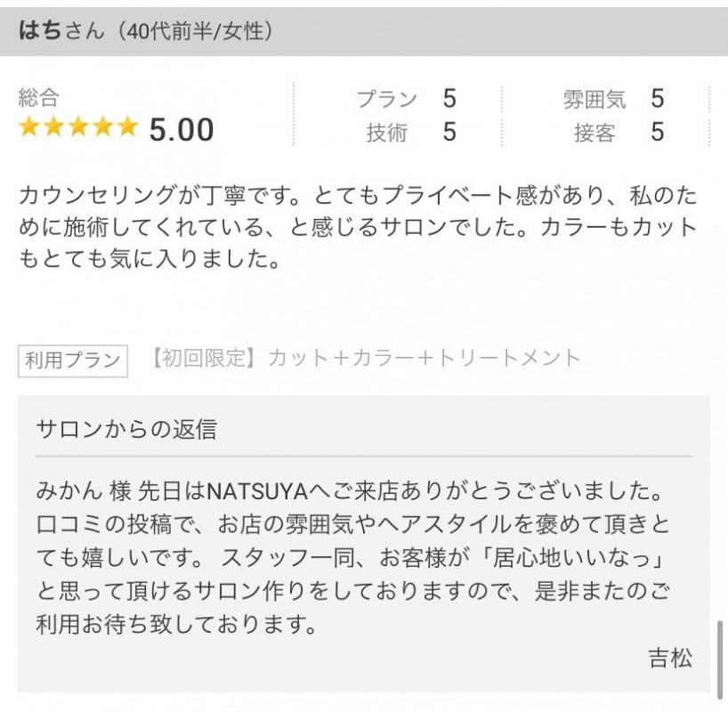 NATSUYAにはショートヘアを得意とするスタイリストが多数在籍しております。これまで2万人以上のあらゆる髪質や骨格のお客様を担当してきました。髪の乾かし方や、スタイリングの方法などアフターサービスも充実しています。是非一度お任せください♪