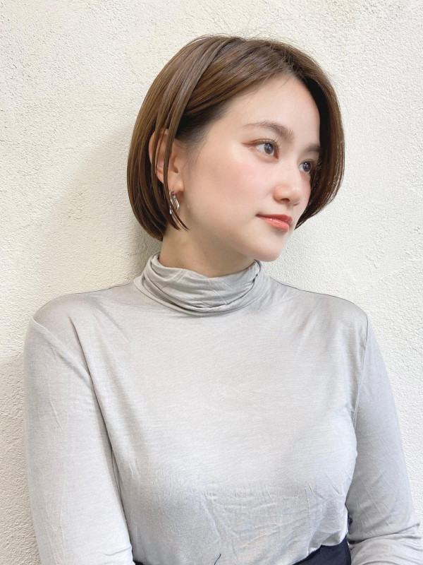 ショートボブの中でも、ひし形で耳掛けするショートボブは小顔効果抜群。 短すぎるのには抵抗がある方におすすめです。