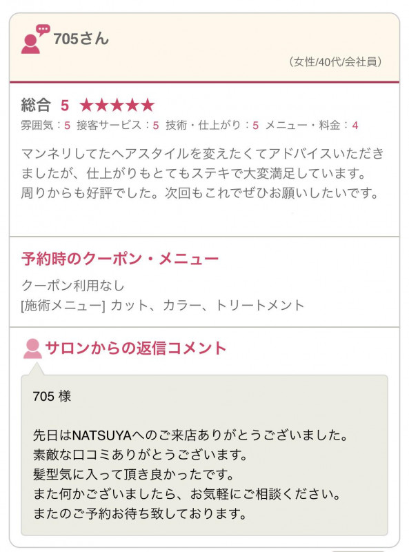 NATSUYAにはショートヘアを得意とするスタイリストが多数在籍しております。これまで2万人以上のあらゆる髪質や骨格のお客様を担当してきました。髪の乾かし方や、スタイリングの方法などアフターサービスも充実しています。是非一度お任せください♪